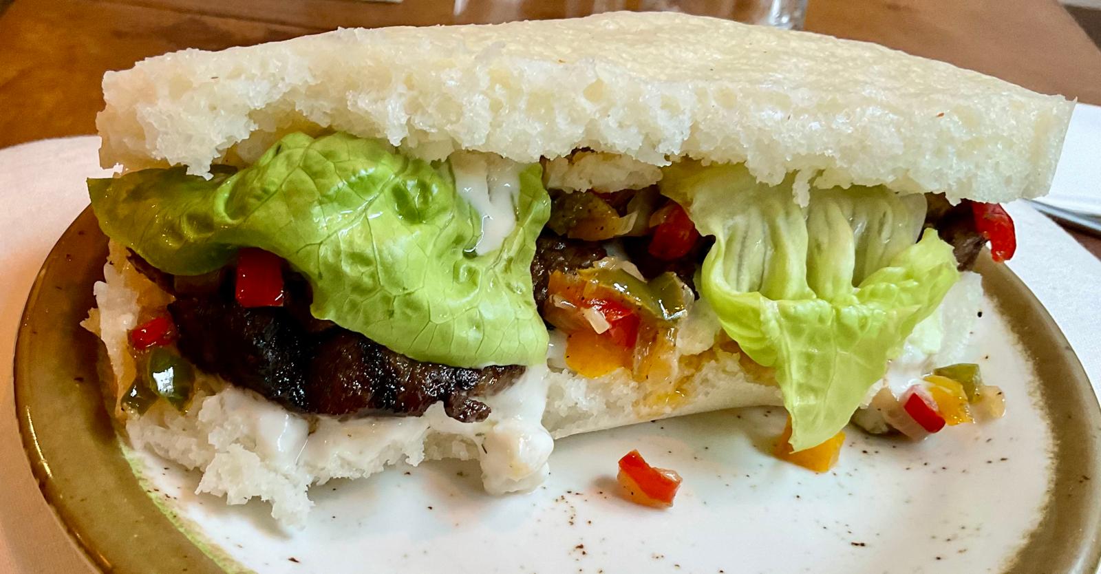 Ingrédients : Ablo, poulet, sauce coco, poivron, sucrine.